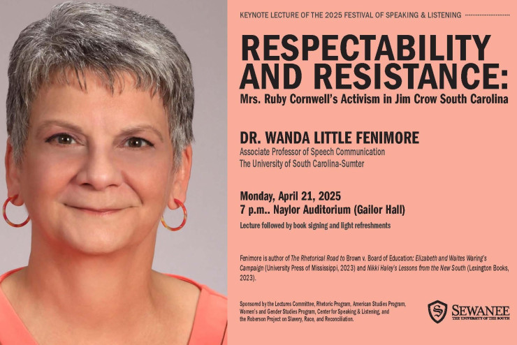 - 2025 Keynote Speaker: Dr. Wanda Little Fenimore, Associate Professor of Speech Communication, University of South Carolina-Sumter, "Respectability and Resistance: Mrs. Ruby Cornwell's Activism in Jim Crow South Carolina."