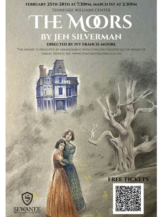 Sewanee Department of Theatre and Dance presents The Moors by Jen Silverman Directed by Ivy Francis Moore, C'26 Feb. 25-28 at 7:30 p.m. March 1 at 2:30 p.m. Proctor Hill Theatre, Tennessee Williams Center The Moors is a contemporary Gothic comedy that depicts the absurd, harsh, and passionate lives of five women and their dog on the English moors in the Victorian(ish) era. Cleverly combining classic tropes from the Brontës, Poe, du Maurier, and more, the play thoughtfully explores the lasting effects of isolation and violence with reckless imagination.