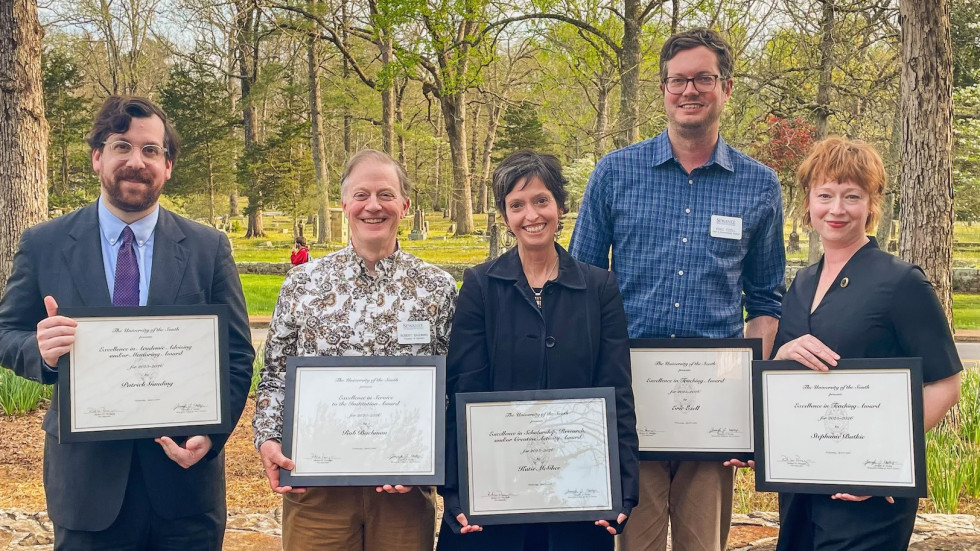 Assistant Professor of Politics Patrick Gauding received the Award for Excellence in Academic Advising or Mentoring. In support of Gauding’s nomination, students noted his commitment to his students and how he has helped them prepare for future career success. Wrote one student, “[Gauding] does a great job linking what students can do on campus or during their time at Sewanee to future career goals. Between conferences, independent study, research assistantships, and internships, he is always helping students find ways to work towards their goals. Every advising session is a combination of practical advice and some career mapping.”