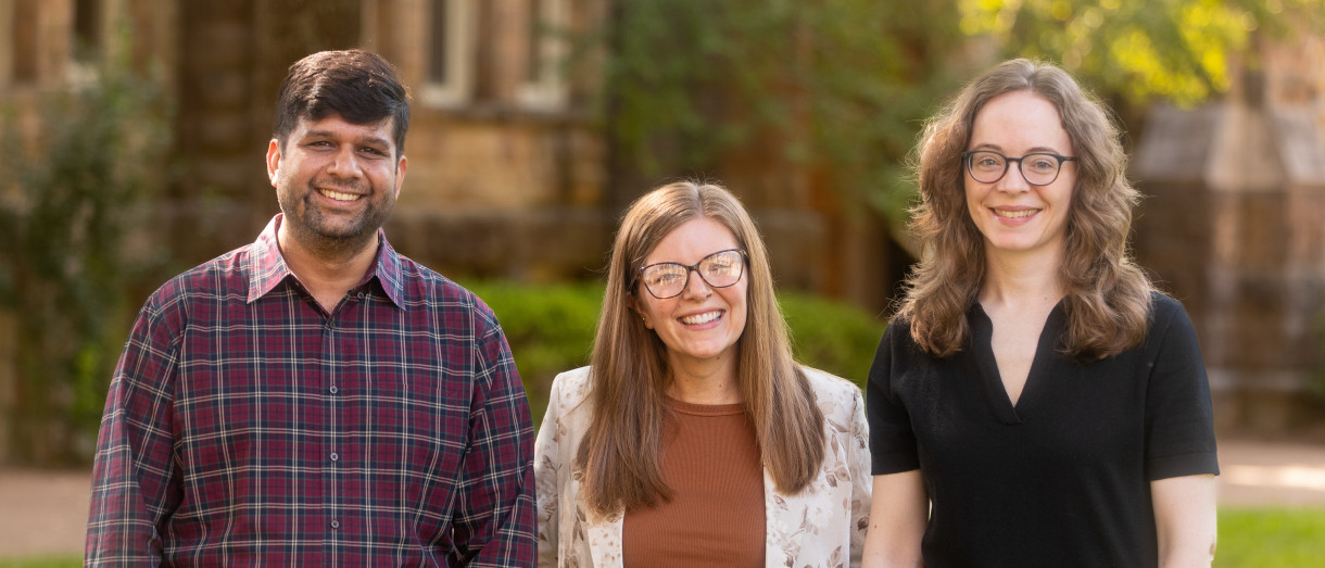 Career Readiness + Student Success has announced the recipients of its Faculty Fellowship for Purpose and Career. The selected faculty are (pictured from left): Associate Professor of Economics Kartik Misra, Assistant Professor of Psychology Katy Morgan, and Assistant Professor of Anthropology Emily Sharp.