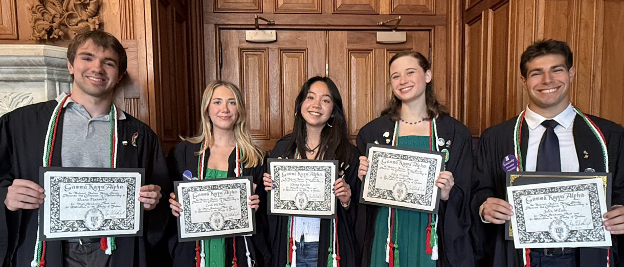 On Wednesday, April 8, the Sewanee chapter of Gamma Kappa Alpha National Italian Honor Society inducted its second class of new members (pictured above, left to right): Shane Flannery, C’26; Leah McBain, C’26; Nicole Nguyen, C’26; Sofia Tripoli, C’26; and John Wilson, C’26. Sewanee’s first members were inducted in 2025.