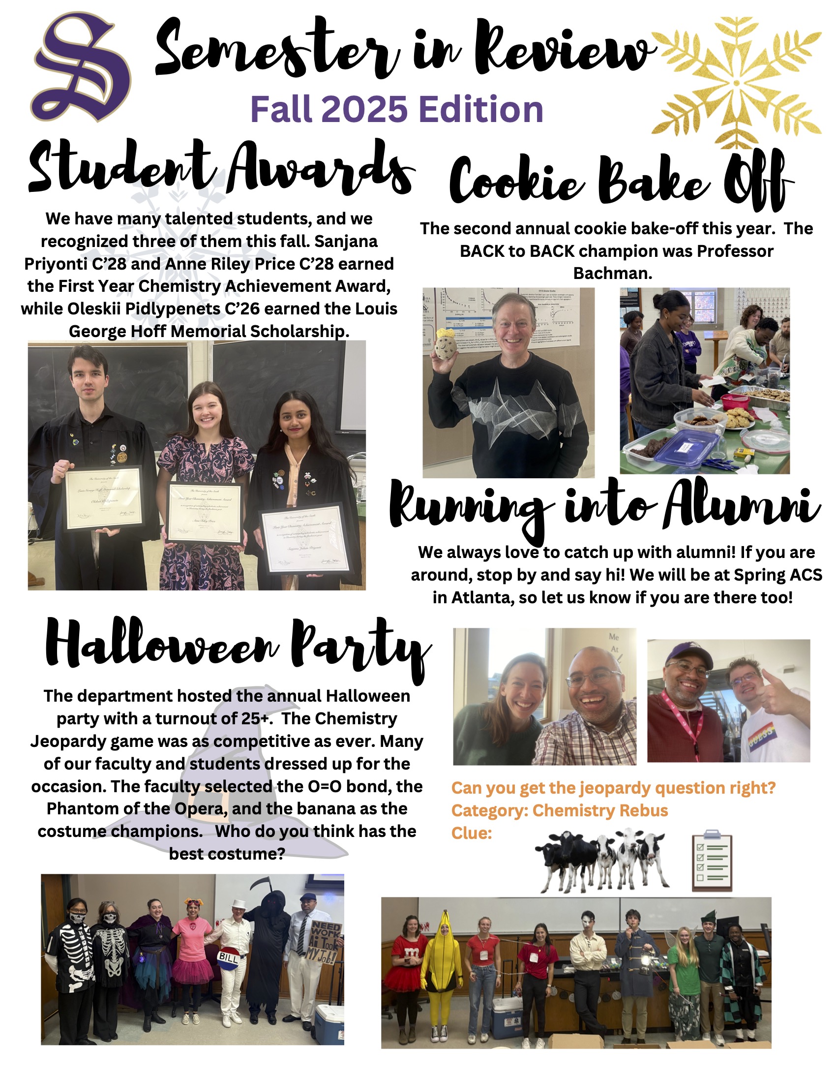 First-Year Chemistry Achievement Award—in recognition of outstanding scholastic achievement in Chemistry during the first year.