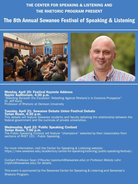 With generous support from the Office of Undergraduate Research, the Rhetoric Program, and the Center for Speaking & Listening, three Sewanee students–Makenzie Pentz, Anne Mitchell Welch, and Annie West–presented papers at the recent Theodore Clevenger Undergraduate Honors Conference in Greenville, South Carolina...