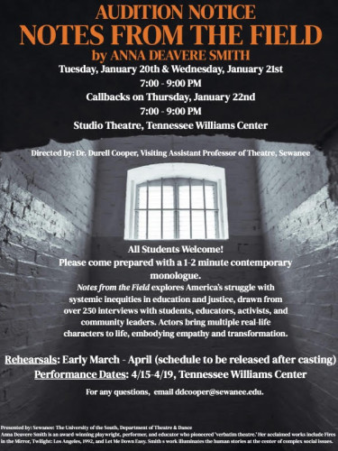 Theatre at Sewanee gives students the opportunity to engage in a dynamic liberal arts education while offering the personalized attention of an arts conservatory. We seek to create a supportive, inclusive environment where all voices are heard and thrive, where students gain confidence in their public speaking. Auditions and classes are open to everyone.