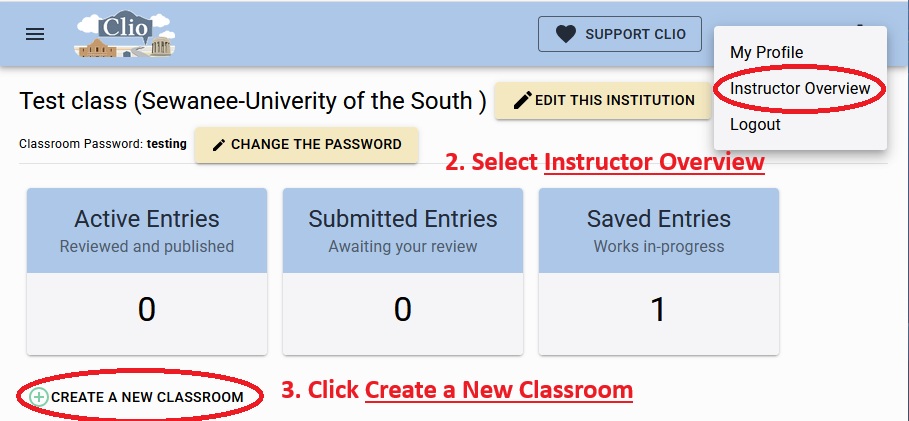 Clio allows instructors to create a "classroom" so that students can work on a tour together. It also allows instructors to view students' progress on their tours without making them viewable to the pubic. Clio also provides resources for instructors on different was to incorporate Clio into their class. If you want those resources go to the instructor resources section of the resources page.