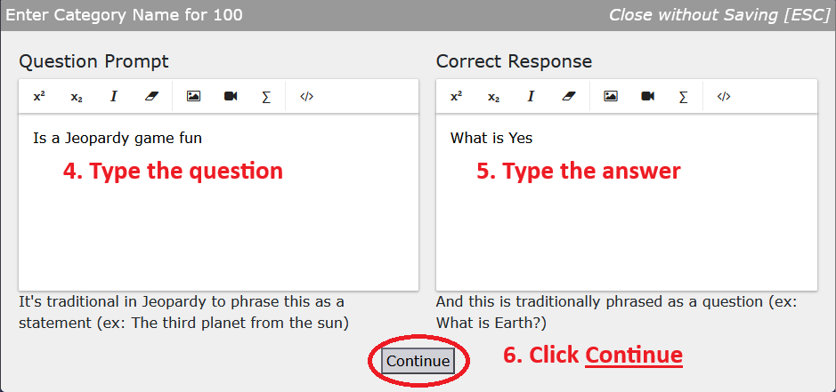 Jeopardy Lab is a website that offers both free and paid versions, allowing you to create Jeopardy games. The free version is limited to 25 questions, cannot be made private, and does not support uploading images, math equations, videos or audio.